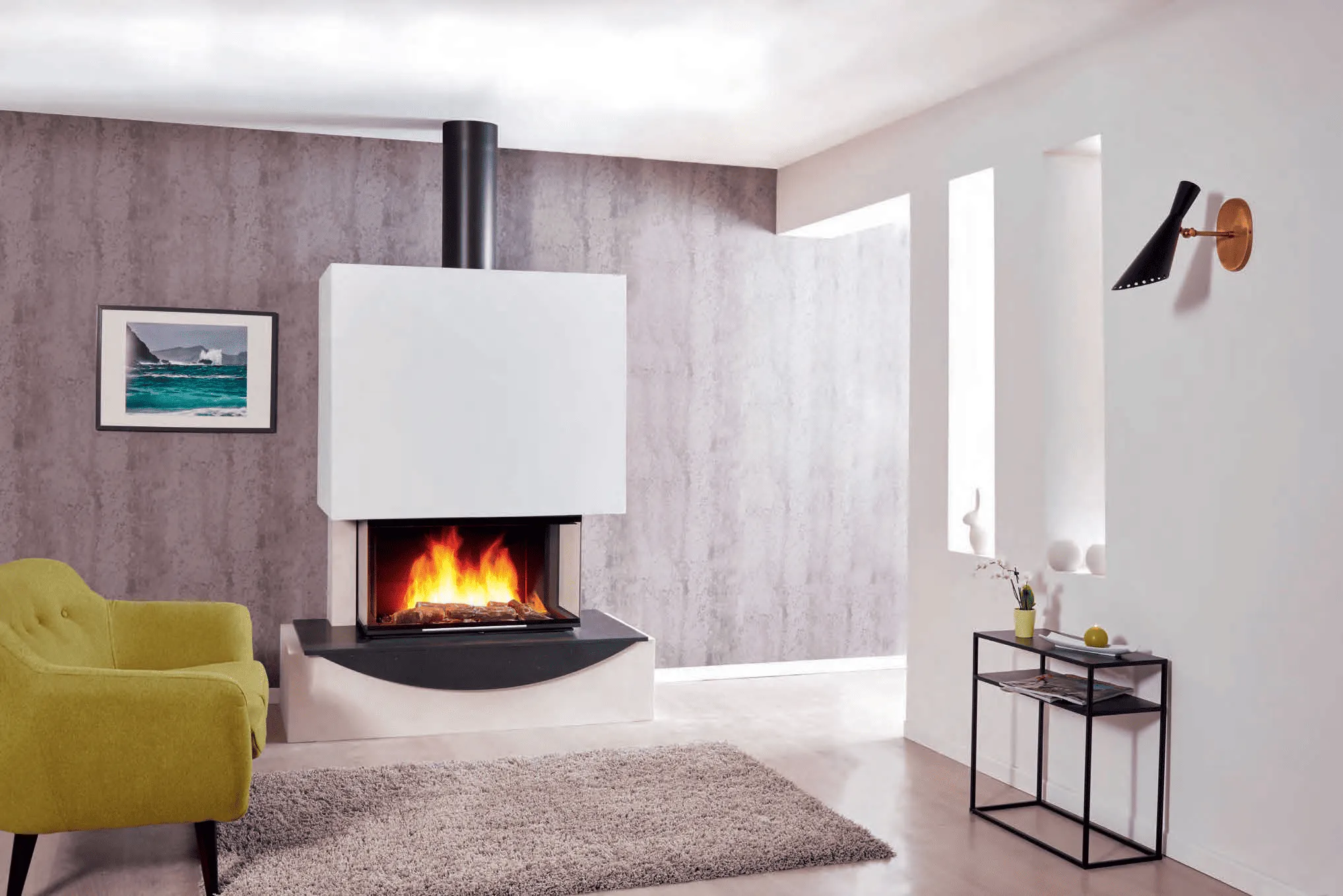 Le soubassement de cette cheminée est réalisé en pierre blanche de Provence et pierre bleue du Hainaut adoucie. Elle peut également être disponible en pierre marbrière du Portugal.